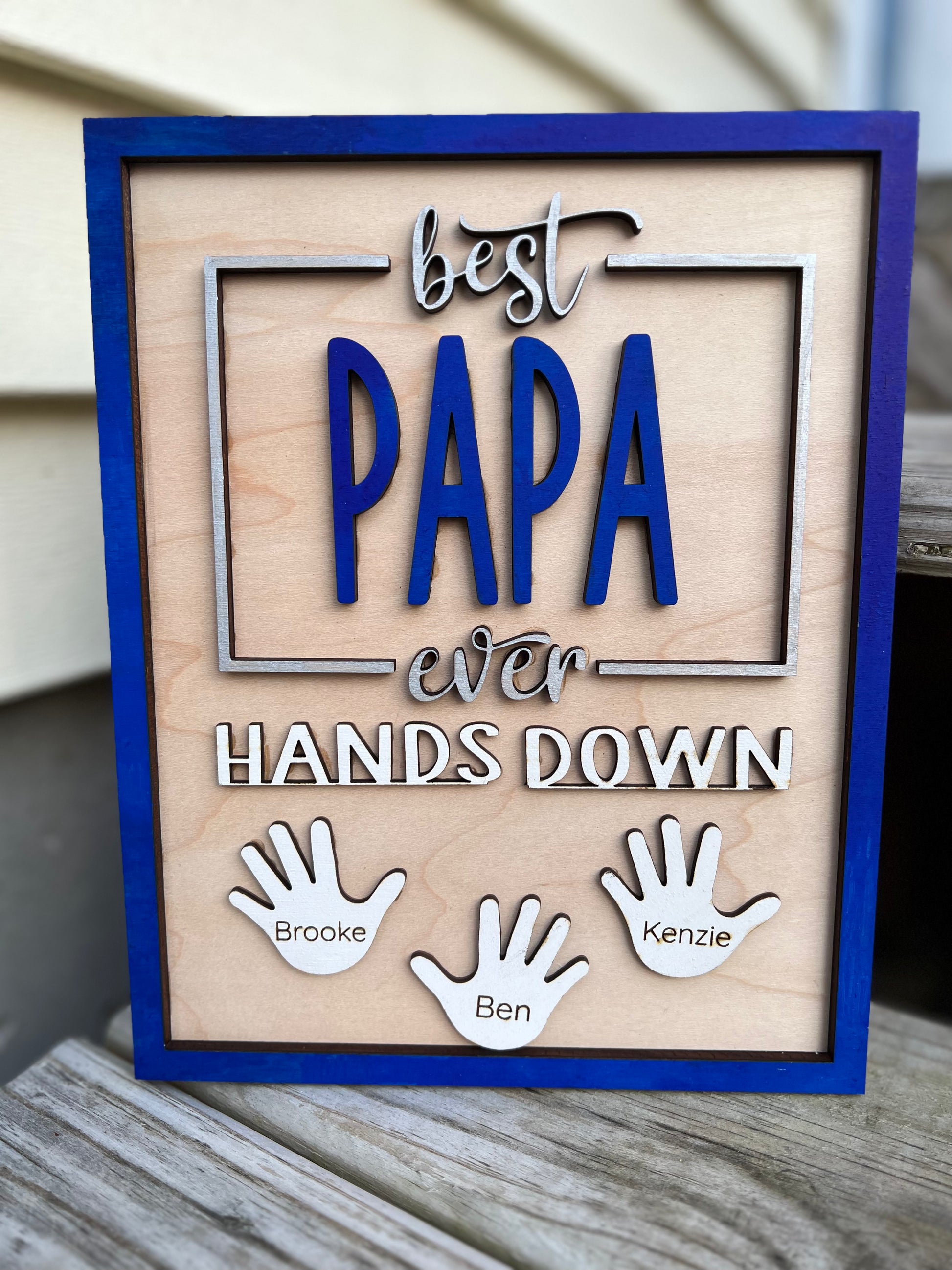 **Sign is able to be personalized on the top (Where Papa is) as well as on the hands**