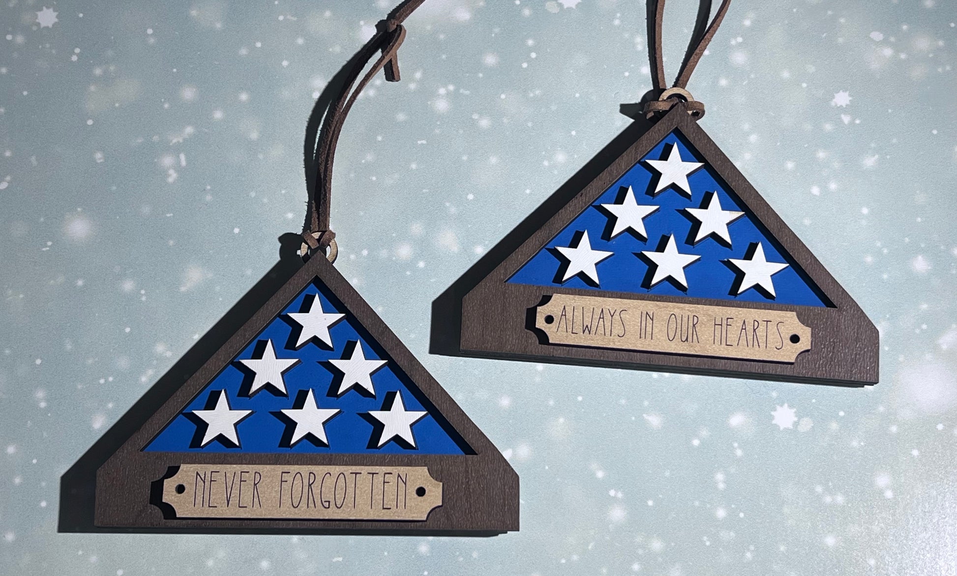 To honor a Veteran lost, we are offering two sayings for this folded flag ornament. Choose your saying.