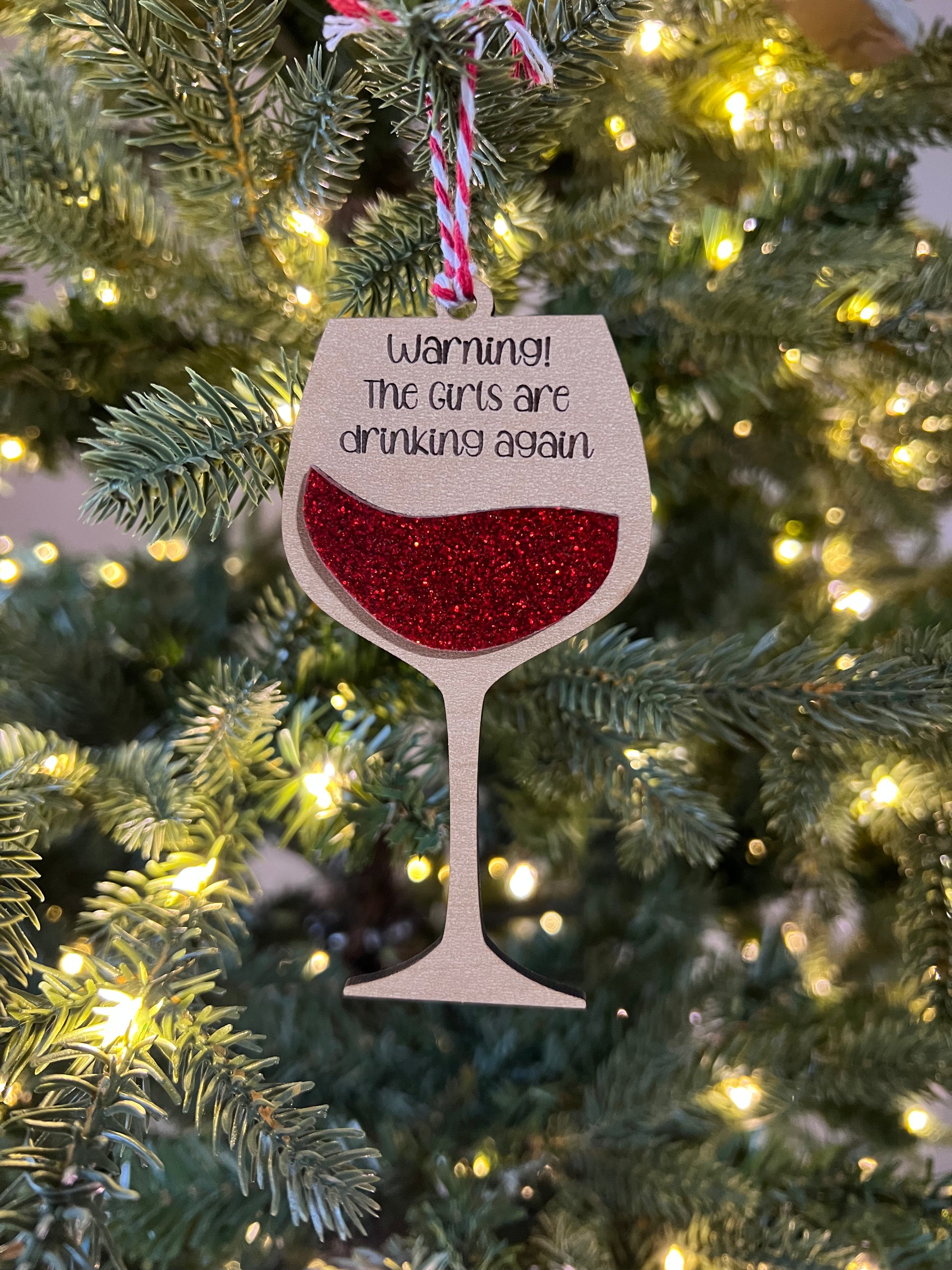 Wood and red sparkly acrylic glass with etched wording