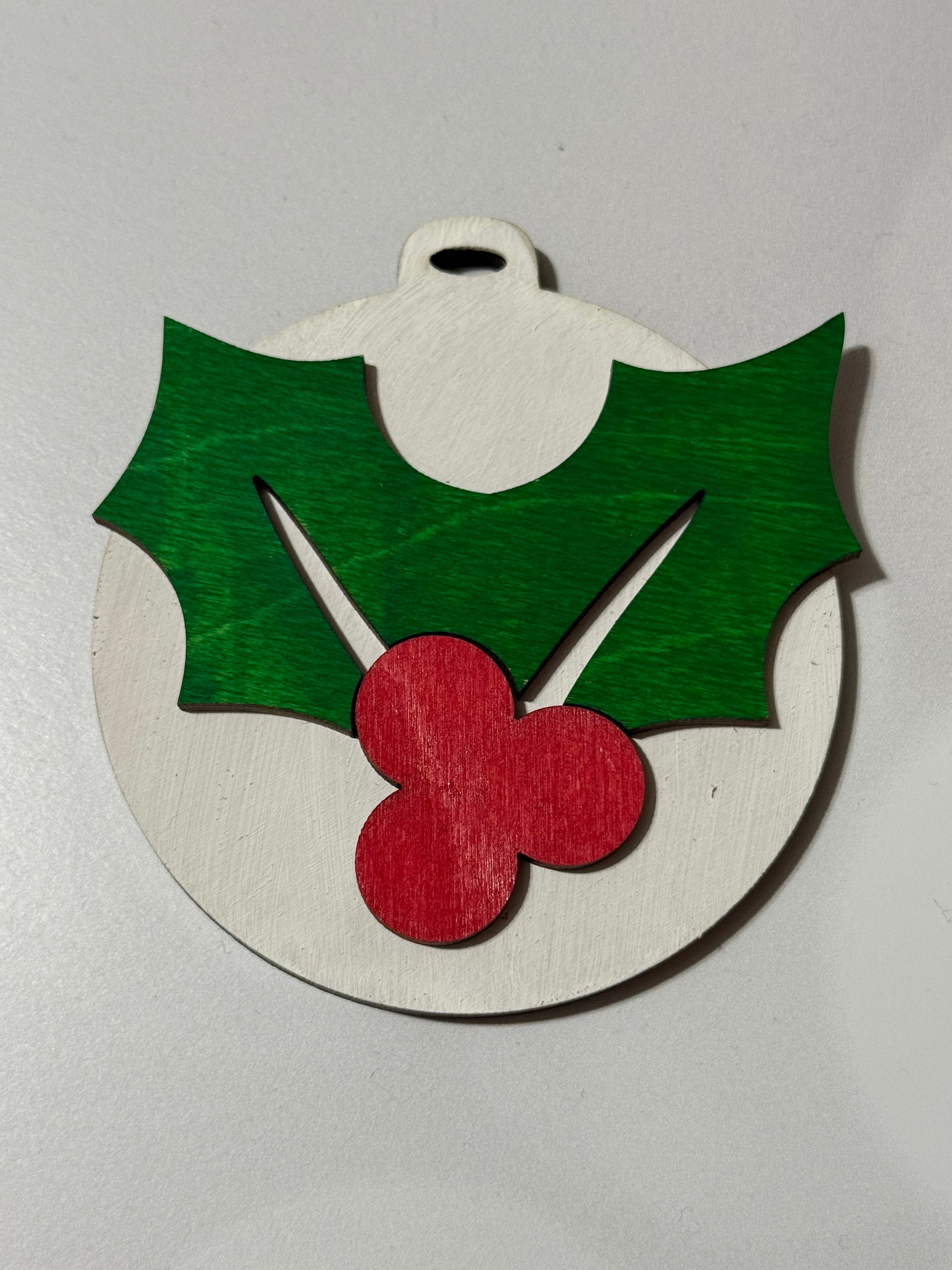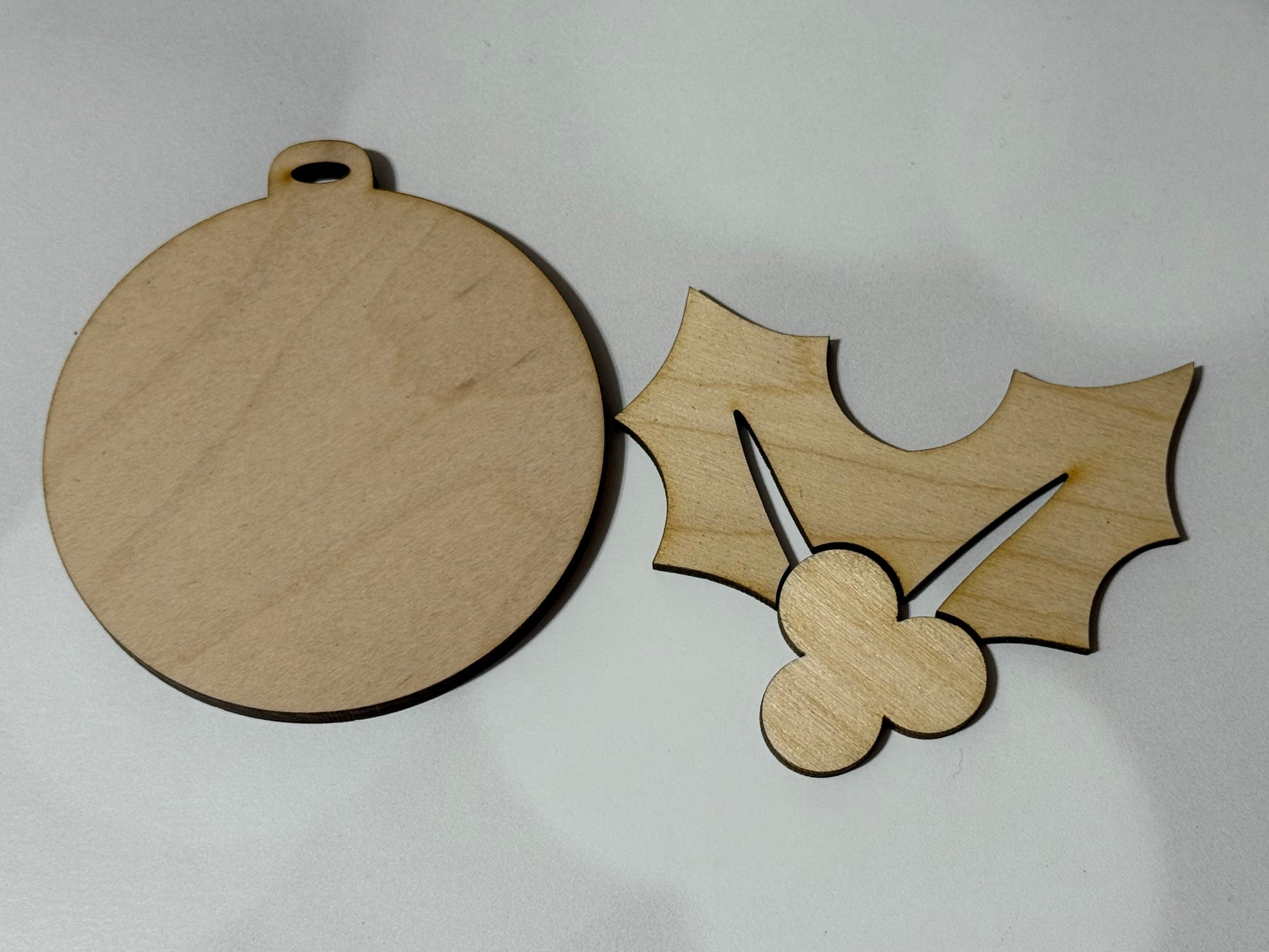 Unpainted 2 layer holly with peelable 3m backside on the top layer to allow for easy application (and also no need for glue!). Will include a small round easy peel Velcro to apply to use with sign!