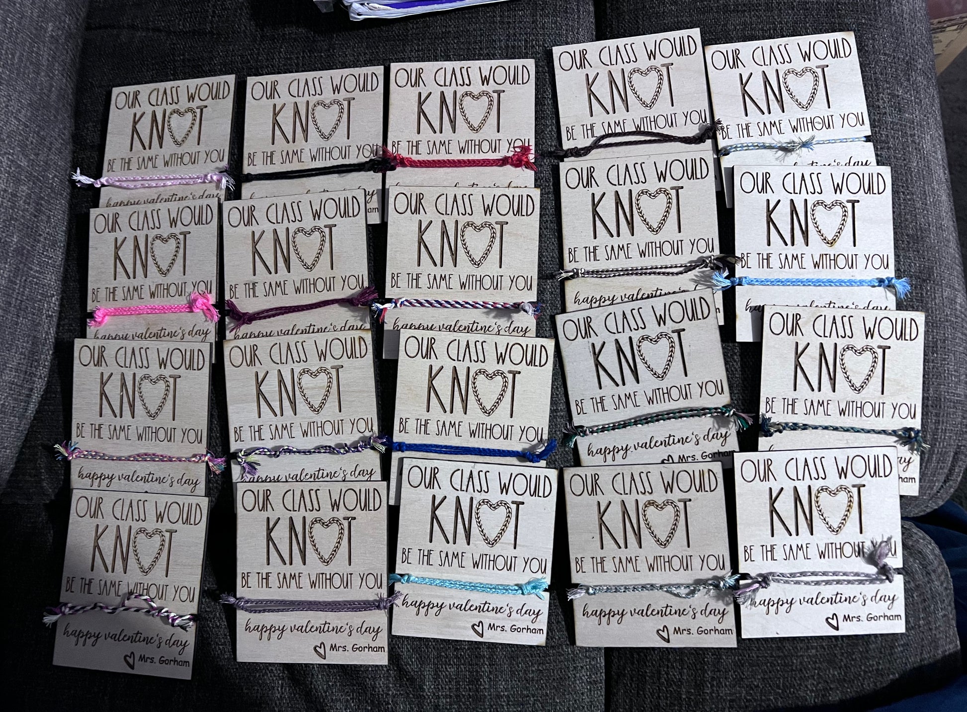 Add your name to this wooden card (make sure to enter in box below) with bracelet attached and enclosed in cellophane bags perfect for gift giving this Valentine’s Day!