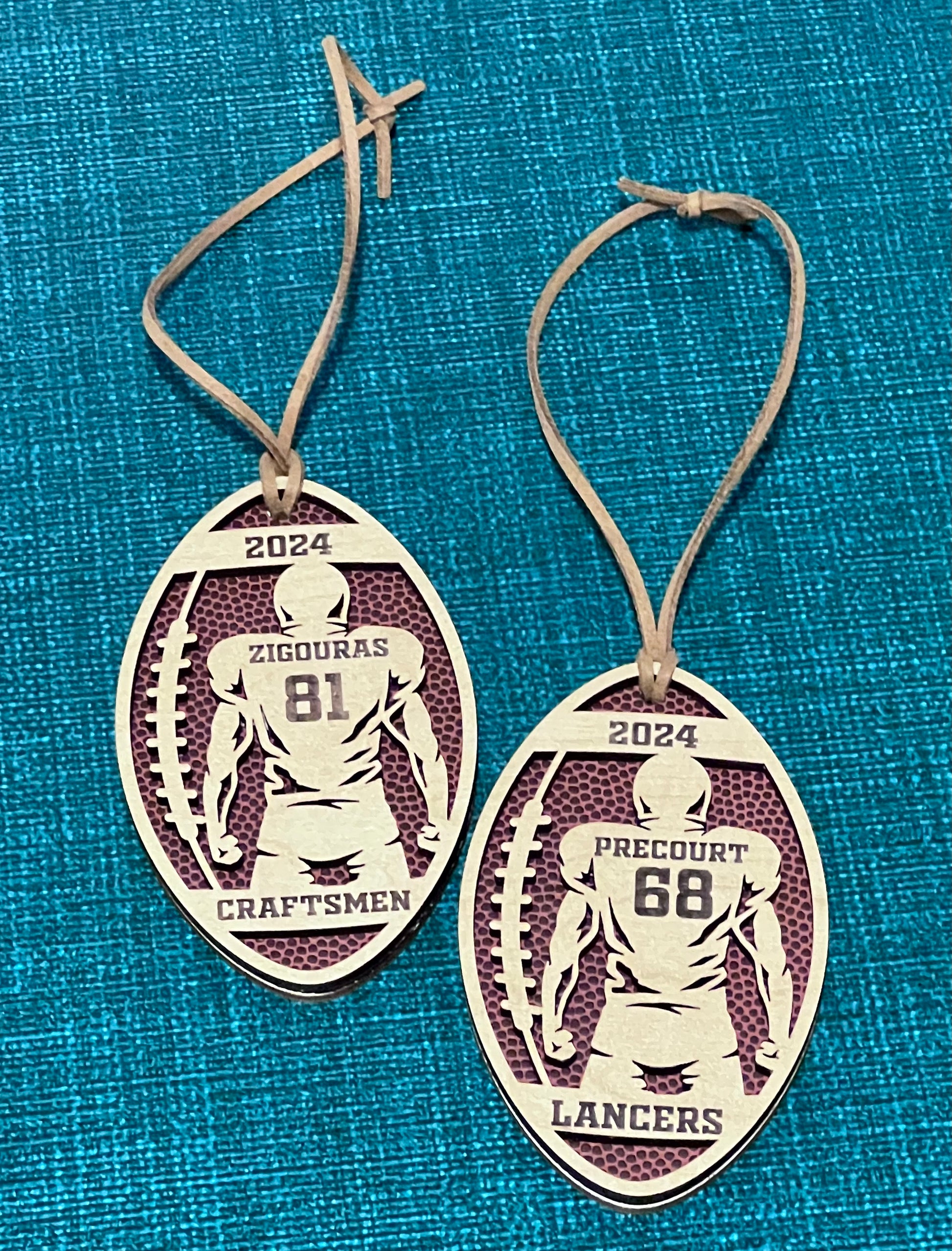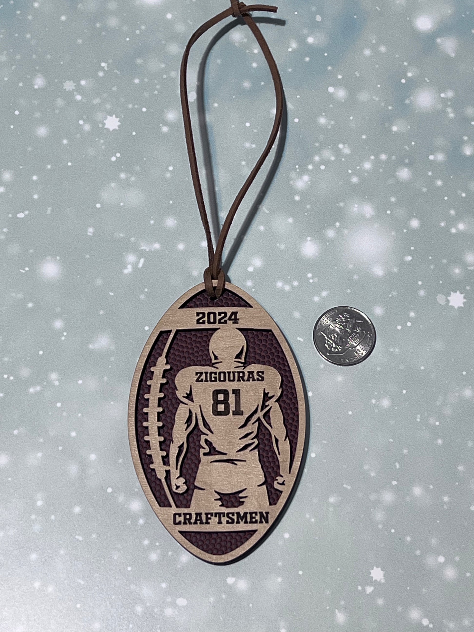 Celebrate your favorite football player with our Personalized Football Player Ornaments! Made with high-quality wood and leatherette, these custom ornaments are the perfect addition to your Christmas tree. Add a personal touch and show your love for the sport with a unique, customized player ornament.