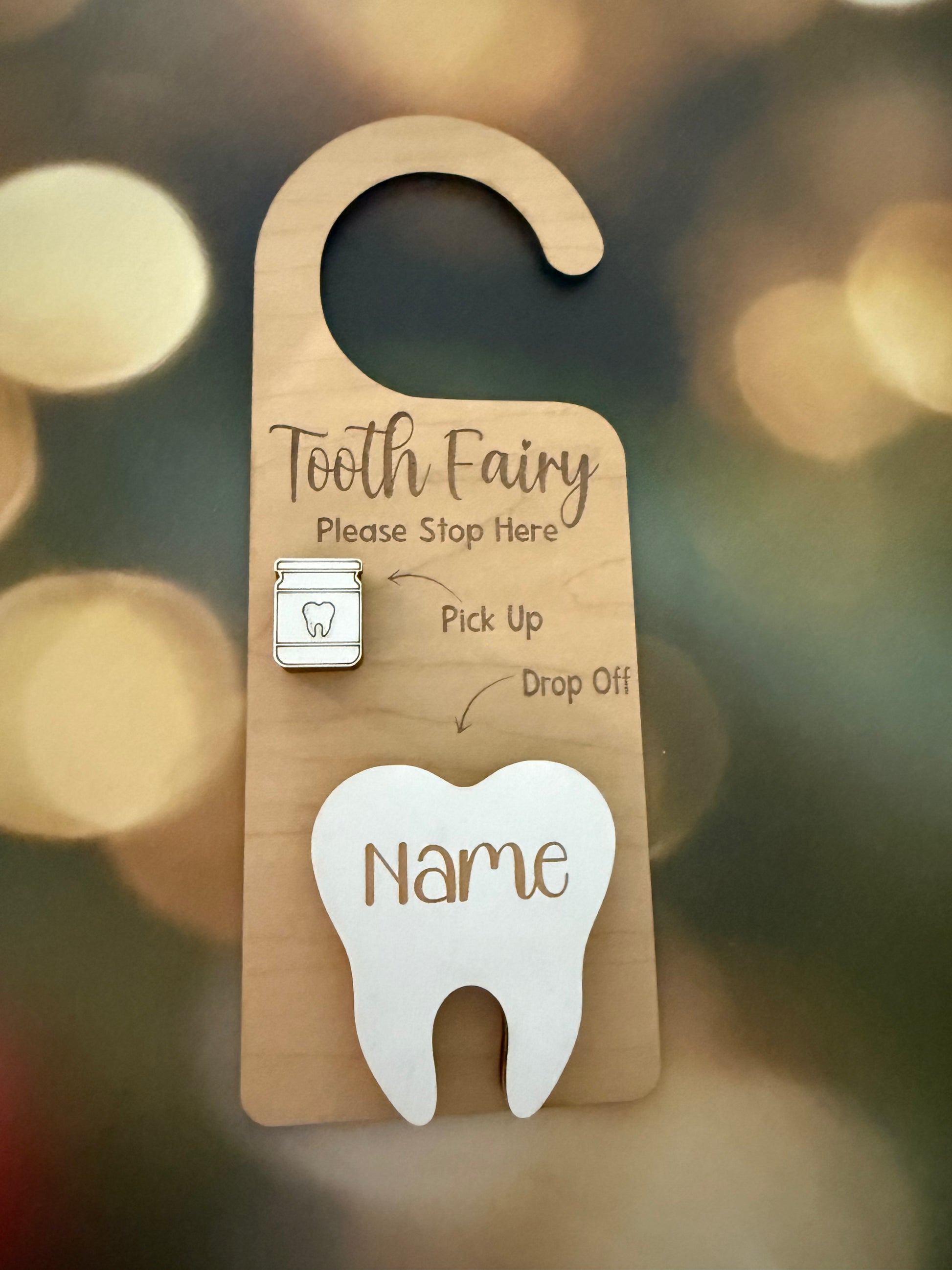 Tired of sneaking under pillows? Let the Tooth Fairy find teeth with ease using our customized door hangers — a fun, adorable, and mess-free solution for kids and parents!