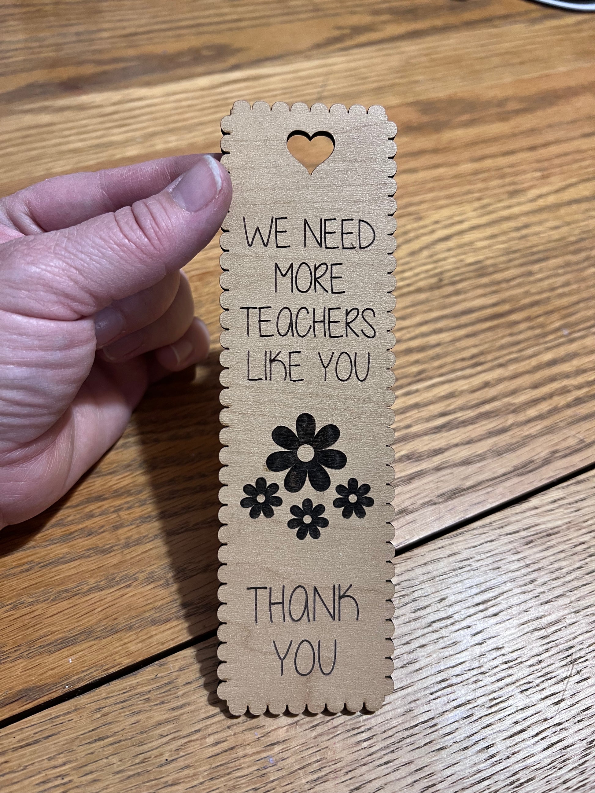 Grab one (or a few) different bookmarks for the educators in your life! Made with plywood, they are smooth and beautifully engraved.