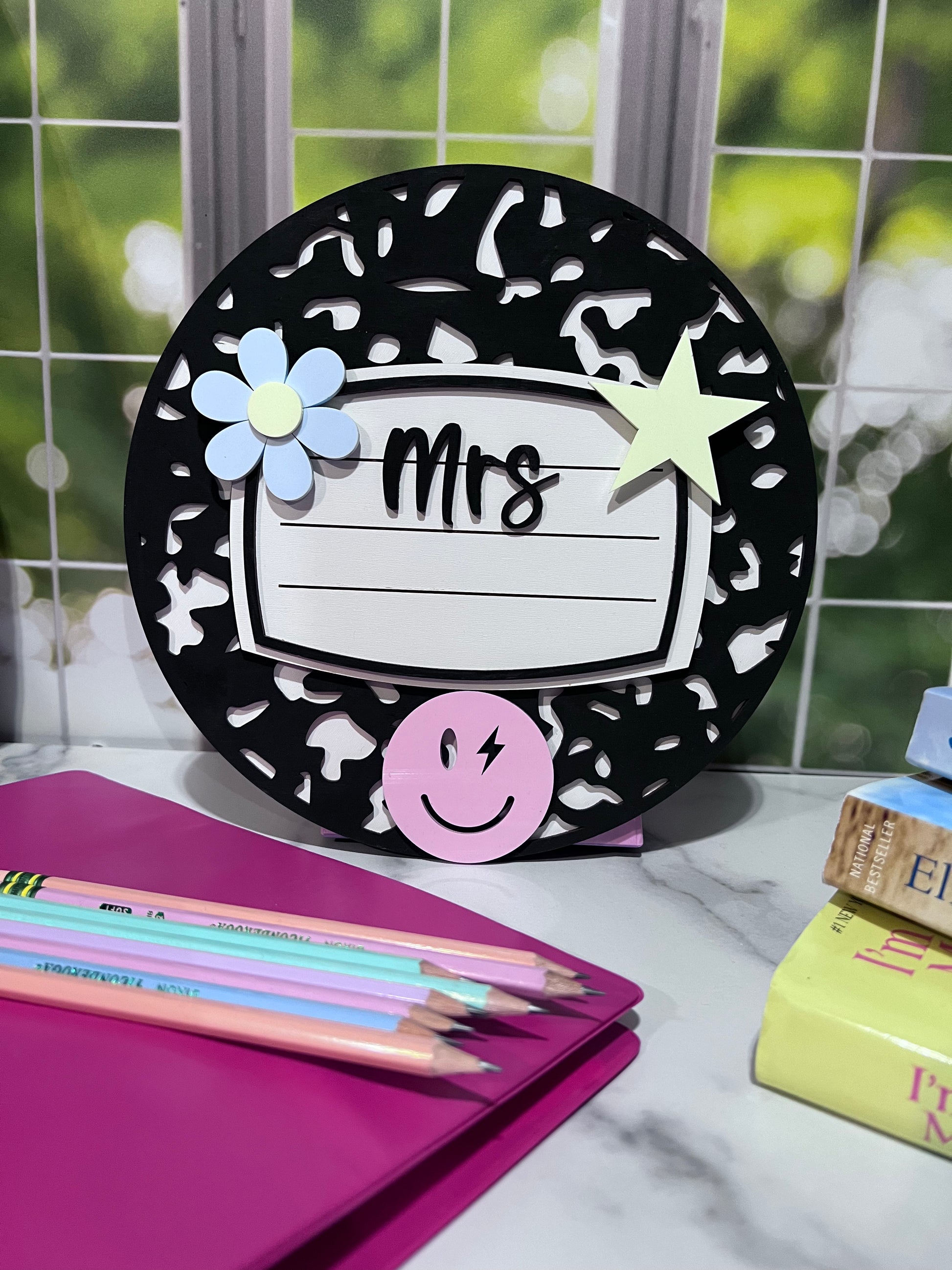 10.5” personalized sign for any classroom or room. Made of wood, whiteboard & pastel acrylic. This sign is perfect for any notebook lover; this sign is reminiscent of our old school notebooks. Totally adorable for any teacher!!
