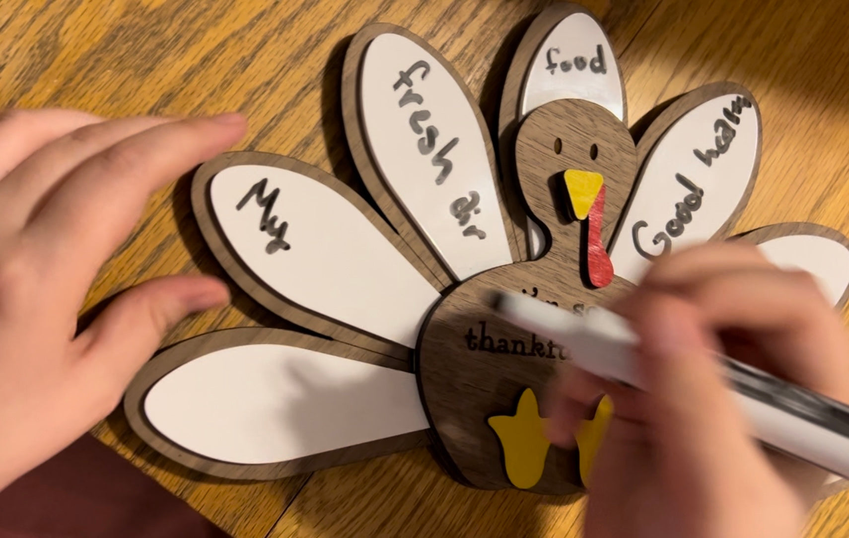 Use Tom to help you and your family members, or even in your classroom, to remember what they are thankful for. His feathers are made of an acrylic that can be written on and wiped off over and over again.